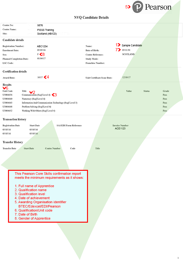 Published July 16, 2021 at 595 × 842 in Pearson Core Skills Confirmation Report.